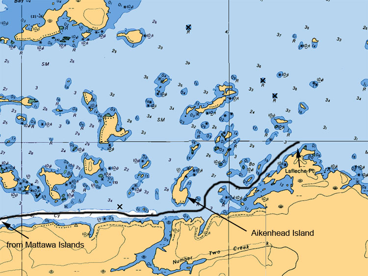 Aikenhead Island to Lafleche point in West Bay of Lake Nipissing